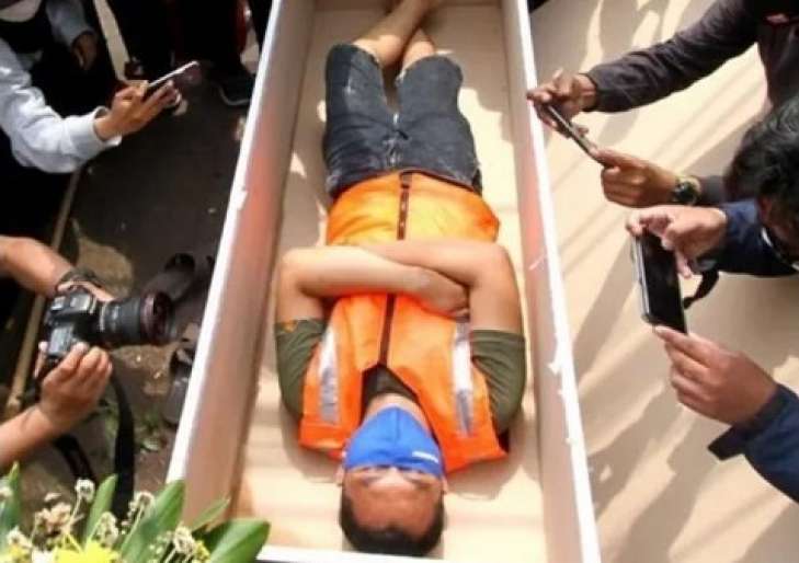 В Джакарте те, кто не соблюдает карантин, ложатся в гроб, сообщает obozrevatel.com.