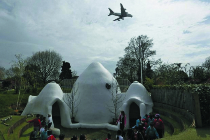 Чтобы не прибегать к затычкам в уши или двойному остеклению в доме, в районе аэропорта Хитроу (Лондон, Великобритания) решили соорудить шумопоглащающую площадку в детском садике.