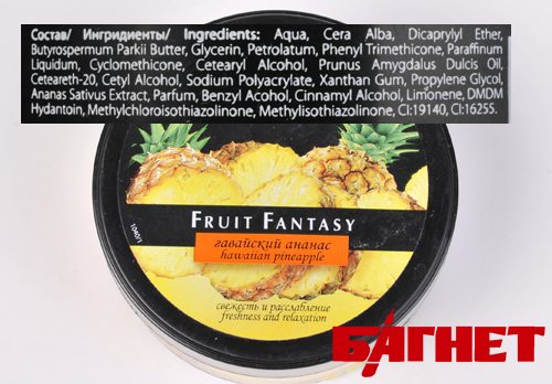 Косметические кремы выделяются в отдельную группу, они бывают на жирной или водной основе, рассказала Наталия Онуфриева. В состав нашего образца кроме воды входят пчелиный воск, смягчитель, масло ши, глицерин, минеральные масла, силикон, миндальное масло, экстракт ананаса. Напомним, «Багнет» уже писал о том, чем полезны растительные добавки в косметике. Кроме того, в состав этого средства, как и любого другого крема, входят стабилизаторы, растворители, загустители и другие эмульгаторы и консерванты (в том числе парабены), которые обеспечивают «товарный» вид и долгий срок хранения продукта. Поэтому лучше покупать косметические средства, у которых срок хранения меньше – значит, в них и консервантов меньше, считает Наталия Онуфриева.
