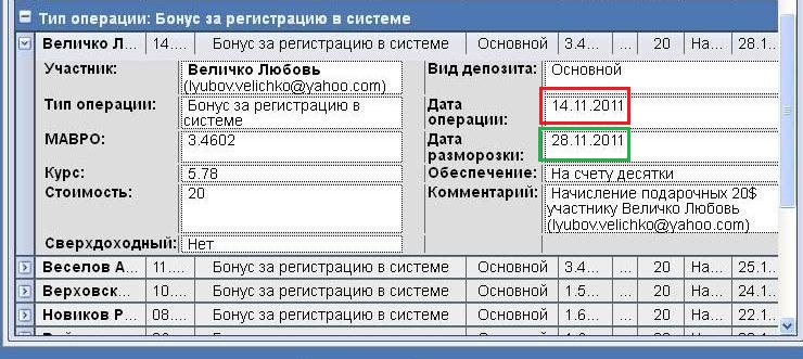 Сразу же после регистрации на сайте можно посмотреть, какие финансовые операции проводятся в рамках «десятки». К примеру, были ли зачислены на наш счет заветные $20.