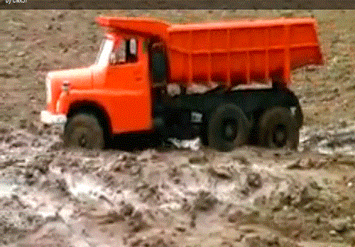 Глядя на копошащиеся в грязи крошечные тракторы или басовито тарахтящие грузовики, размером с портфель, сразу вспоминается анекдот, в котором в разговоре двух приятелей один из них сетует на то, что у него до сих пор нет детей. А в качестве одного из главных поводов для расстройства, вызванных этим фактом, называет то, что «давно хотел купить вертолет радиоуправляемый».