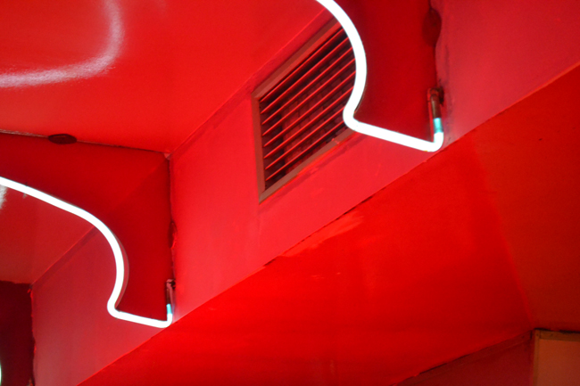 Впрочем, это и хорошо - гореть и выделять ядовитые газы тут просто нечему, а в темноте клуба она практически не заметна. Как и проводка и прочие коммуникации, расположенные прямо на стенах и потолке. В общем, радует то, что среди металла и на стенах и на потолке возможность возникновения пожара с обилием удушающего дыма - минимальна.