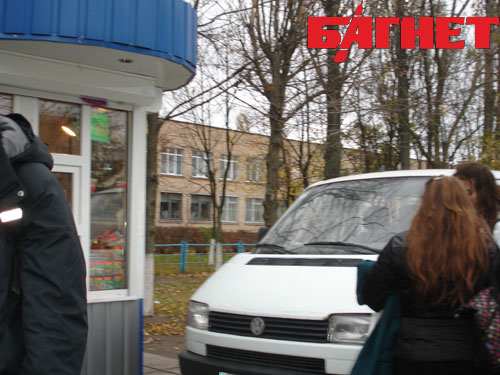 На переднем фото популярный среди школьников киоск, на заднем фоне - одна из школ Оболонского района г. Киева