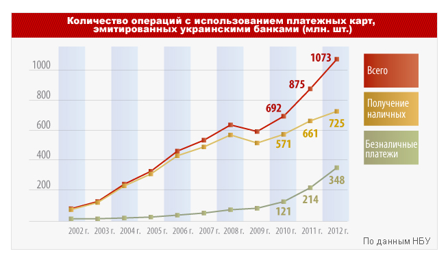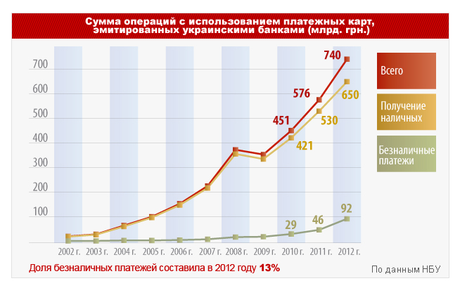 В Украине, согласно статистике НБУ, за последние три года наблюдается стабильный прирост платежных карт. С 2010 по 2012 г. общее количество карт в обороте увеличилось в 1,3 раза. Что касается карт MasterCard, то главными драйверами прироста были, конечно же, новые продукты: карты PayPass и Debit MasterCard.