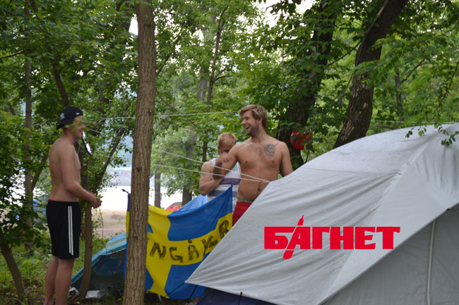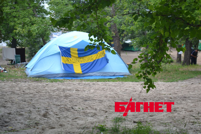Однако шведских болельщиков, уставших с дороги, это не смутило. Они расставили свои палатки в произвольном порядке на песчаном берегу и чуть далее, в глубине Труханова острова, под соснами.