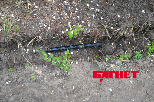 Как потом выяснилось, это так неудачно был засыпан кабель электропередач, который еще накануне уложен не был. При детальном осмотре «грядки» было обнаружено, что кабель закопан действительно неудачно - несмотря на безалаберные «раскопки» и «грядки», в некоторых местах кабель все еще не засыпан и выходит на поверхность земли.