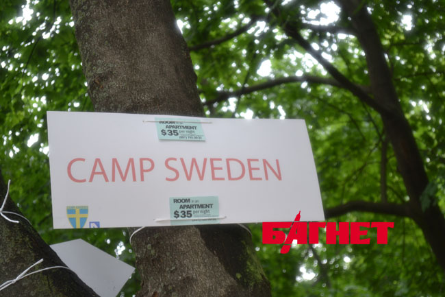 Да и сейчас, увы, изменилось мало. Если не считать, конечно же, уже более тысячи шведов, вселившихся в кемпинг, расставив свои палатки на мокром песке... Но об этом позже, а сейчас об ушлых киевлянах, которые, пытаясь выманить шведских фанов из лагеря, разместили объявления об аренде жилья на период евро на... табличках «Camp Sweden», ведущих от Европейской площади в дремучие леса киевских склонов.