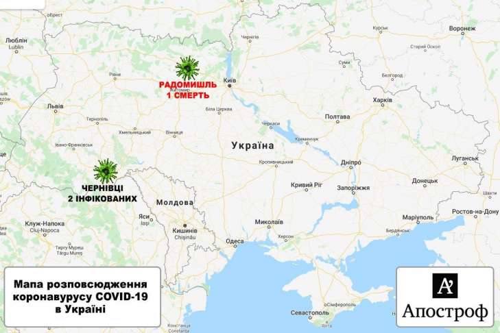А в Радомышле, Житомирской области, 71-женщина вернулась из Польши, она с 3 марта чувствовала симптомы коронавируса, но к врачам обратилась лишь спустя 9 дней, 12 марта. На следующий день пенсионерка умерла. Этот случай стал первым смертельным в Украине.