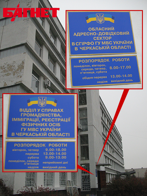 С виду, для непосвященного наблюдателя, все вроде бы пристойно. Жители Черкасс, приходящие в областное подразделение ГИРФЛ за оформлением загранпаспорта, попадают непосредственно к сотрудникам милиции. Но стоит им только приступить к оформлению документа, незаметно для самих себя, они оказываются уже в «швачковско- милицейских» дочерних структурах.