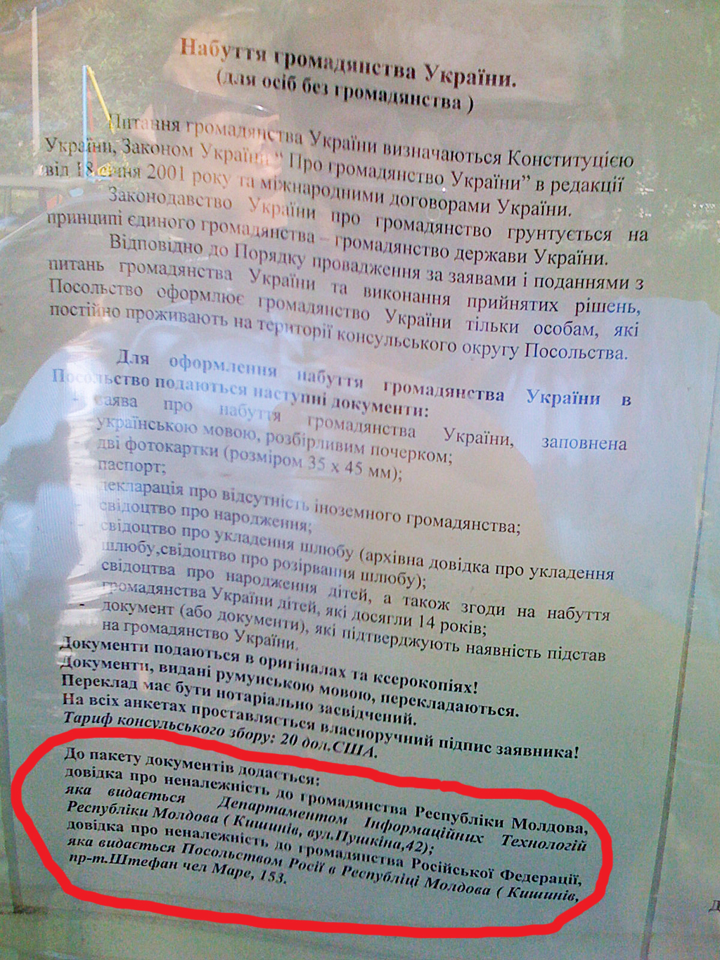 Кроме того, для получения гражданства Украины любой житель Приднестровья должен представить справку об отсутствии гражданства Молдовы и справку об отсутствии гражданства России. При этом с такого заявителя почему-то не требуется справок из посольств остальных государств, поддерживающих дипломатические отношения с Украиной.