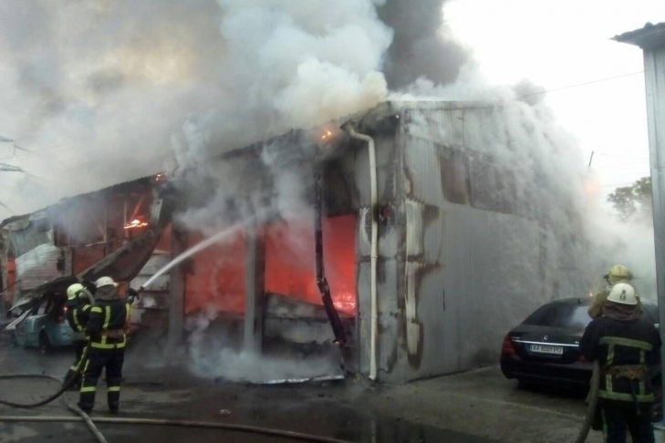 Крупный пожар на СТО в Киеве: три авто сгорели, четыре - повреждены (видео)