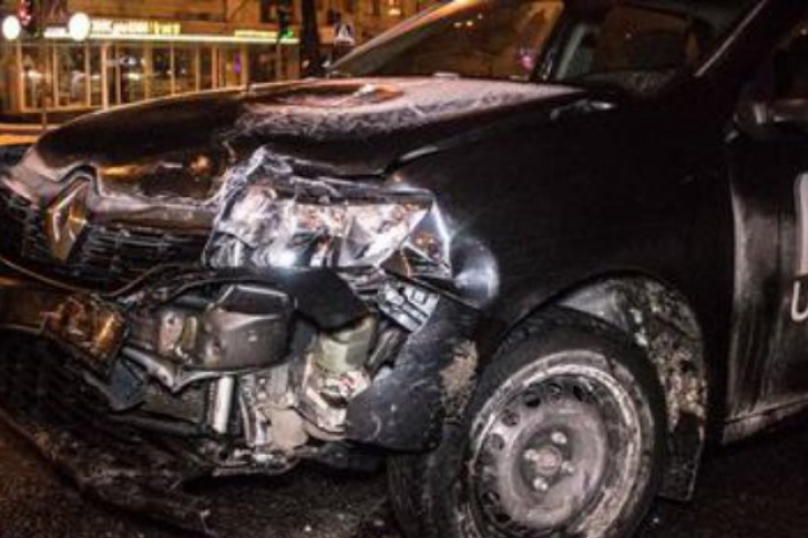 В ночь на среду, 9 января, в Киеве столкнулись седан Renault службы Uber и полицейский Renault Duster, пишет "Информатор".