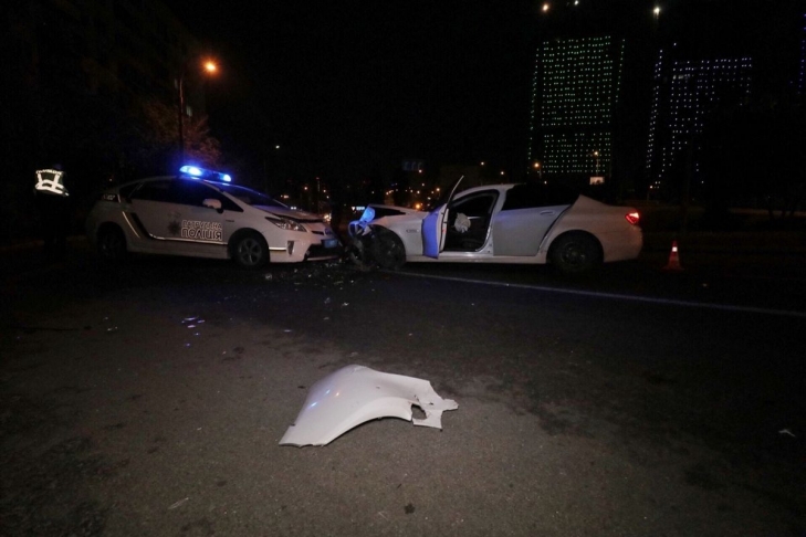 ДТП в Киеве: лоб в лоб столкнулись BMW и полицейское авто, есть пострадавшие