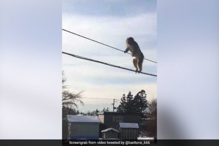 Пользователей соцсетей покорило видео, на котором обезьяны прошли по проводам над занесенной снегом землей в Японии. Об этом сообщает NDTV.