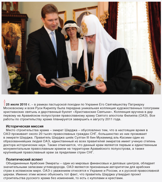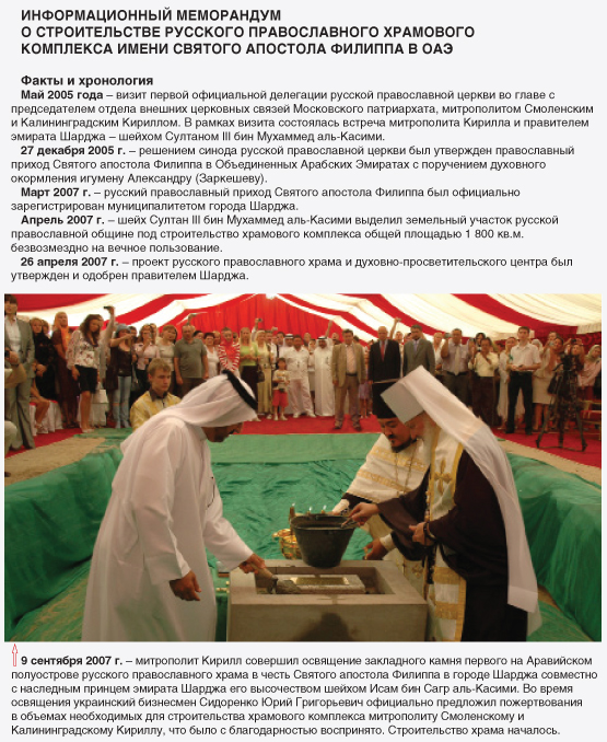 А строительство на аравийской земле первого православного храма за всю историю христианства послужит укреплению веры, возрождению духовности и сплочению людей.
