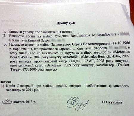 Как сказано в иске Окунской, Пашинский владеет двумя автомобилями Mercedes и тремя катерами.