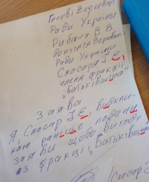 Нардеп в заявлении о выходе из «Батькивщины» сделал девять ошибок