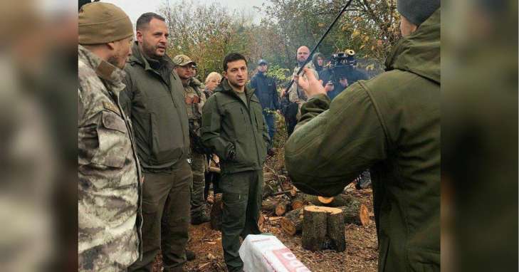 Президент Украины Владимир Зеленский в субботу, 26 октября, побывал на позиции украинских добровольцев в районе населенного пункта Золотое, где должно состояться разведение сил и средств. Об этом сообщает Telegram-канал "Последний блокпост #Нет капитуляции", информирует BAGNET.