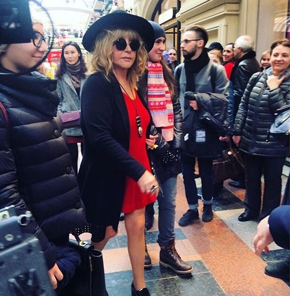 Алла Пугачева отправилась на весенний шоппинг в ГУМ, где с удовольствием фотографировалась с желающими и ела мороженное. Наряд для прогулки Пугачева выбрала яркий: красное короткое платье, черные очки и широкополая шляпа.