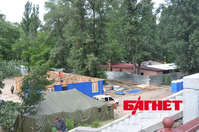 Во-первых, это общий вид строящегося кемпинга, который уже к приезду болельщиков должен быть завершен. Но, вот, меньше чем за сутки, читатели могут сами наблюдать, что по месту, где в палатках должны почивать иностранные фаны, разъезжают грузовики, складывают стройматериал, вокруг которого суетятся рабочие, пытаясь доделать недостроенные объекты.