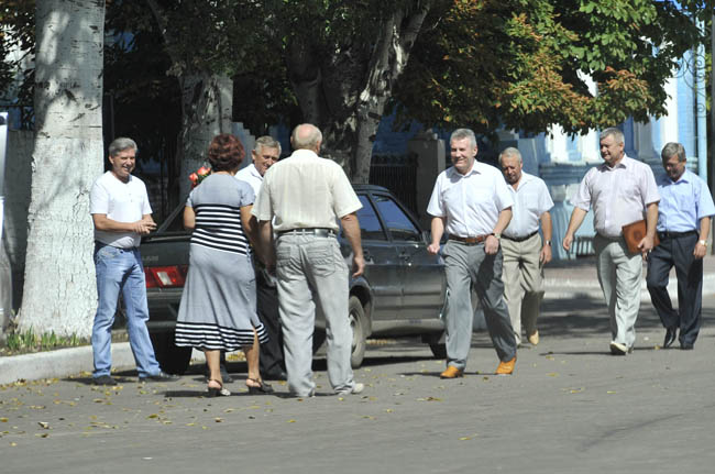 Местная "знать" поздравляют юбиляра прямо на улице возле ресторана в Гуляйполе