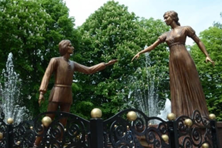Во Львове появился памятник местным Ромео и Джульетте. Установлен он на музыкальном фонтане, который 9 мая открылся в центре города. Автором проекта выступил скульптор Мирослав Гоза. Статуи сделаны из бронзы в полный человеческий рост. Фигуры парня и девушки символизируют итальянца Ромуальдо и украинку Пелагею, которые жили во Львове в 16-м веке и полюбили друг друга. Родители были против их связи, так как юноша был католиком, а девушка - православной.
