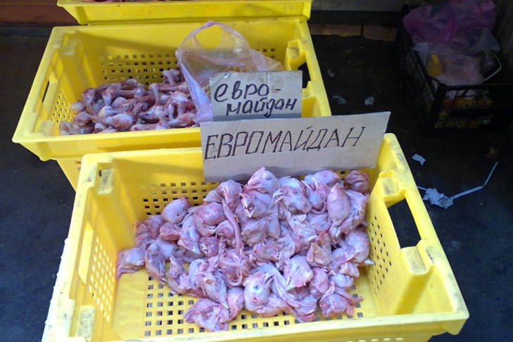 Продавцы куриных отходов сравнивают участников митинга с кучкой отрезанных голов