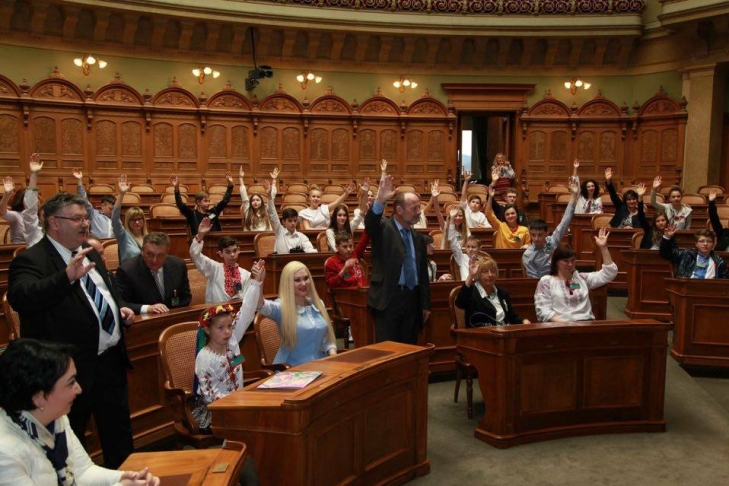 Группа украинских детей в рамках международного социального проекта «Дети за мир во всем мире», который объединяет 35 стран мира, посетили парламент Швейцарии. Участников этого проекта поздравили Председатель Национального Совета Швейцарии, сопредседатель Группы «Дружба с Украиной» Криста Марк Вальдер и Второй Вице-председатель Национального Совета Швейцарии Д. де Бюман.