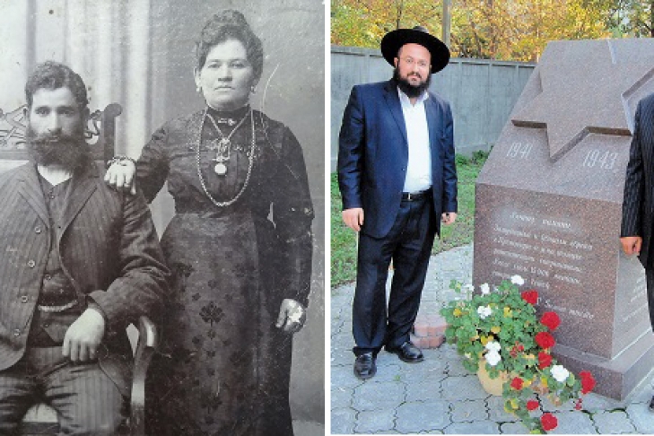 | Расстрелянные нацистами Мирьям и Берл Лазар Мовшовичи | Раввин Кременчуга Шломо Давид Саламон и президент общины Яков Бирфер у памятника жертвам Холокоста |