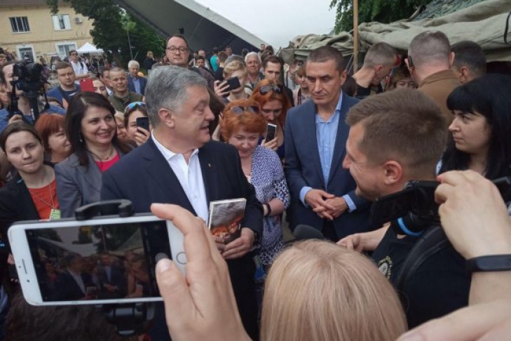 Порошенко окружили посетители. Из-за фото с людьми, он "потерял" жену.