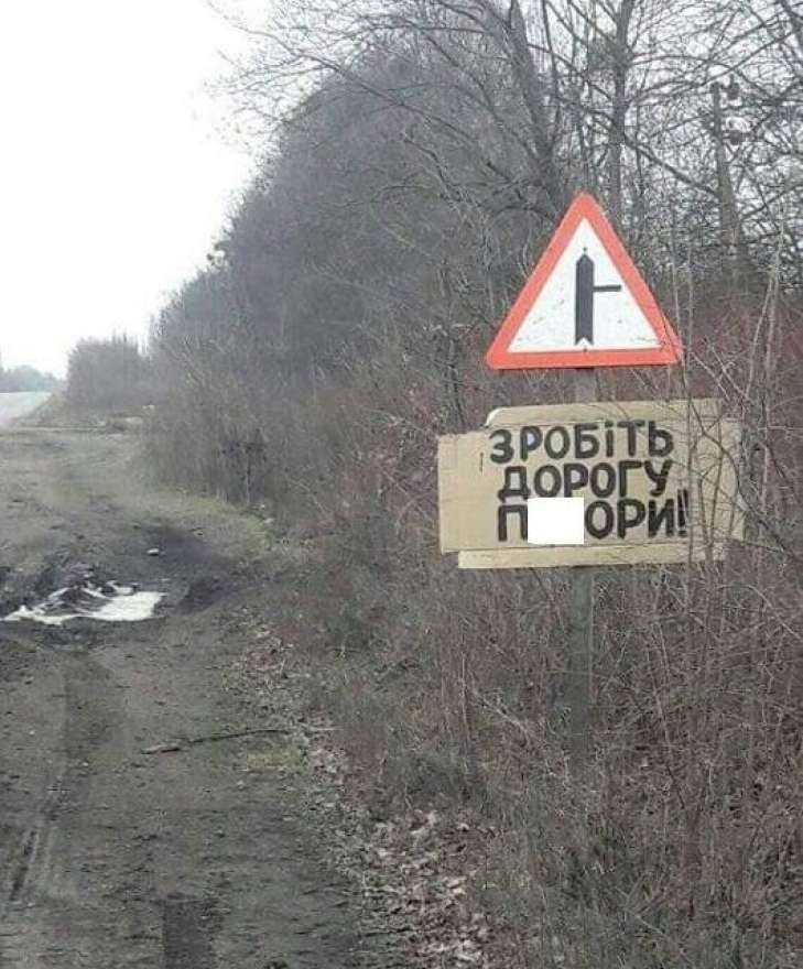 Так, нервы не выдержали у жителей Винницкой области, которые придумали свой дорожный знак, посвященный чиновникам. На нем красуется надпись: "Сделайте дорогу, пи**ры!".