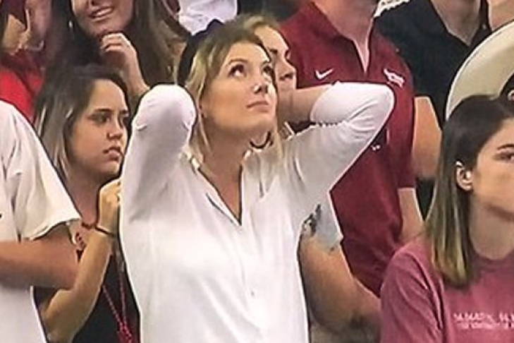 Фанатка Арканзаса, которая посетила матч своей любимой команды против Техаса, забыла об одной важной часть гардероба.