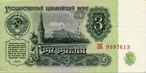 А вот новая «трешка» была особо любимой в народе, ибо ее зеленый цвет символизировал (в какой-то мере) цвет «зелененького продукта» – «три рубля и бутылочка пошла» говаривали о продукции ликеро-водочных изделий
