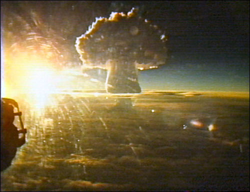 И последствия ее срабатывания. Снимок сделан с борта самолета-носителя Ту-95, командиром экипажа которого был, до взлета майор Андрей Егорович Дурновцев, а после приземления – Герой Советского Союза подполковник Дурновцев