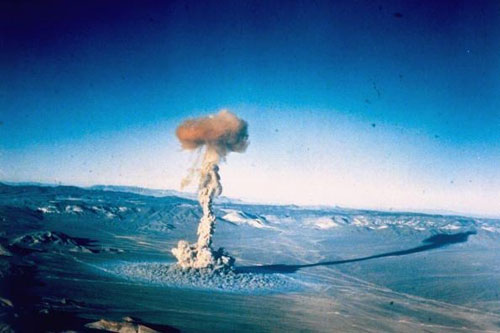 Первый советский подземный ядерный взрыв в штольне Семипалатинского полигона 11 октября 1961 года. Отчетливо видны осыпи и пыль, подброшенные вздрогнувшей землей. Фотография из архива Минатома и публикуется впервые