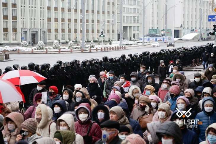 Часть пенсионеров водили хоровод у здания КГБ Беларуси. Их оттеснили силовики.