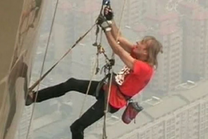 В Сеуле полицейские задержали знаменитого французского скалолаза Алена Робера прямо во время восхождения на 123-этажный небоскреб Lotte World Tower.