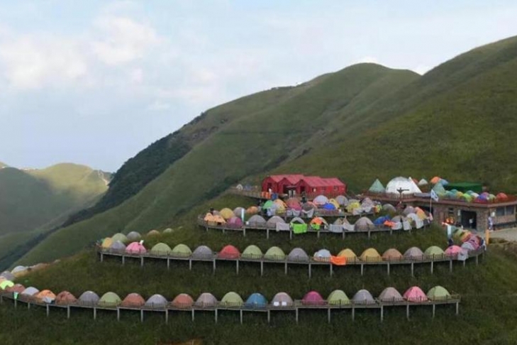 В Китае установлен новый рекорд Гиннесса — туристы разбили на склоне горы в Вуконге самую длинную вереницу из 721 палатки.
