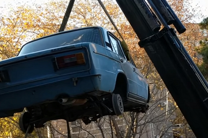 В Тбилиси с балкона хрущевки сняли новенькие "Жигули", которые были "припаркованы" там 27 лет назад.