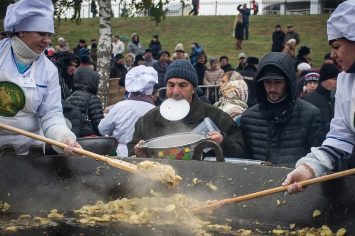 На ярмарке в российском городе Тамбов организаторы устроили раздачу бесплатного жареного картофеля и окрошки: местные жители пришли с ведрами.