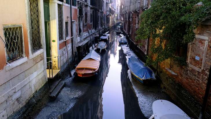 Каналы рекордно пересохли в Венеции вслед за рекордным наводнением