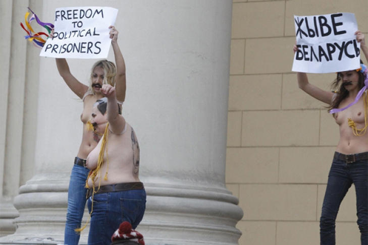 Как сообщалось, активистки-FEMENистки «поперли грудью» на генштаб КГБ в столице Беларуси. Три активистки FEMEN, одна из которых специально была подобрана для того, чтобы спародировать «бацьку» Лукашенко, перекрыли вход в главный офис КГБ в Минске. Топлес-активистки держали в руках плакаты с надписями «Живэ Беларусь!» и «Свободу политзаключенным». Свою акцию движение FEMEN приурочило годовщине минской бойни на Площади Революции.