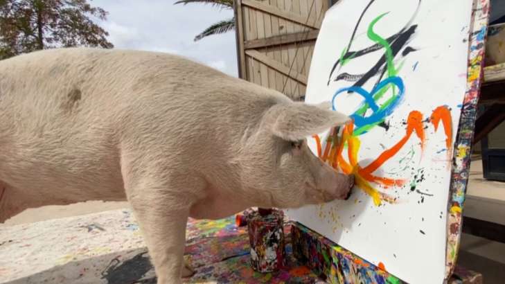 Портрет был создан за несколько минут. Как отмечается, 4-летняя свинья нарисовала уже сотни картин.