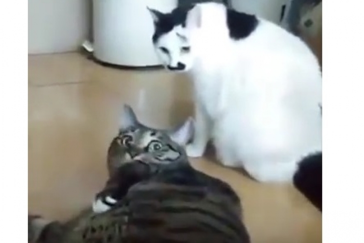 По соціальним мережах стрімко поширюється відео, надане порталом Reddit. У ролику знято бійку двох котів, яка була зупинена товстим свідком конфлікту, який виступив у ролі миротворця.