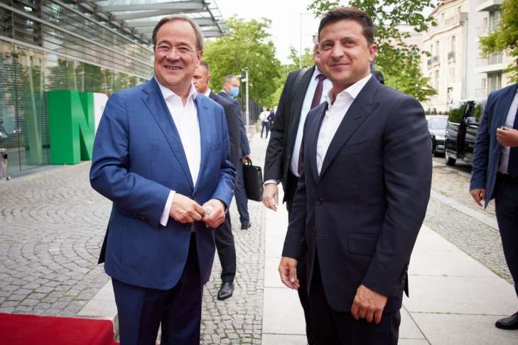 Президент Украины Владимир Зеленский в рамках визита в Германию встретился с кандидатом в канцлеры Германии, премьер-министром федеральной земли Северный Рейн-Вестфалия, председателем Христианско-демократического союза Армином Лашетом. Об этом сообщает пресс-центр Офиса президента.