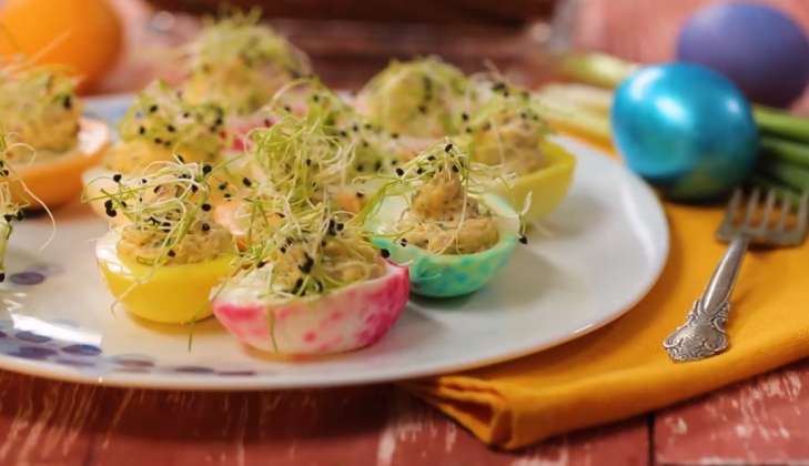 Продолжаем готовиться к Пасхе. Если вы планируете приготовить несколько праздничных салатов, предлагаем разнообразить стол оригинальными фаршированными крашенками, рецептом которых поделился Григорий Герман в программе "Ранок з Україною".