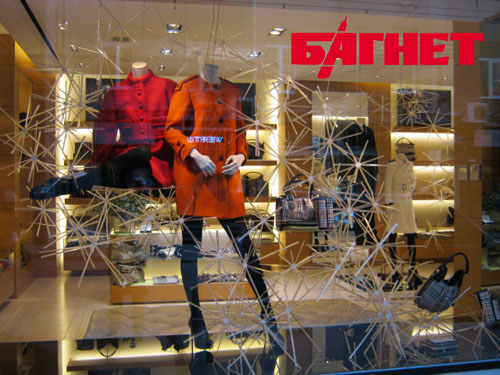 Известно, что больше примерок будет у той модели, которая не просто висит на плечиках, а одета на манекен. Но что делать, если по соседству другой магазин, тоже торгующий кофтами и юбками, и который тоже нарядил пластмассовых мужчин и женщин? Проблему решают дизайнеры, которые создают неповторимые композиции и образы. Например, этот бутик женской одежды заманивает прохожих пряниками. Такое решение в оформлении витрины заслуживает первого места.