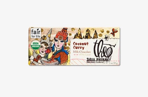 Шоколад с необычным, пряным вкусом выпустила американская компания Theo Chocolate. По словам ведущего шоколатье марки Беки Довилль, создавая комбинации из разных вкусов, она не ставит перед собой пределов. Как результат, марка Theo Chocolate активно собирает престижные награды за такие вкусовые сочетания, как «Фига, фенхель и миндаль» или «Лаймовый кориандр». Не стал исключением и молочный шоколад с добавлением поджаренного кокоса и острого карри. Вкус необычной плитки получился весьма экзотичным, и его в первую очередь смогут оценить по достоинству любители индийской кухни. Органический шоколад от фабрики Theo отличается коротким сроком хранения, но зато производится только из экологически чистых ингредиентов.
