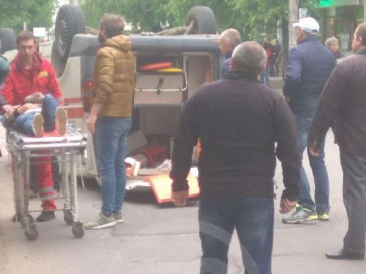 "Скорая помощь" попала в ДТП и перевернулась