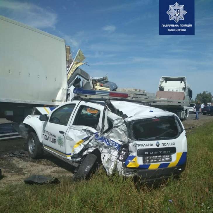 В ДТП на трассе Киев-Одесса с участием грузовиков и полицейского авто пострадали патрульные.
